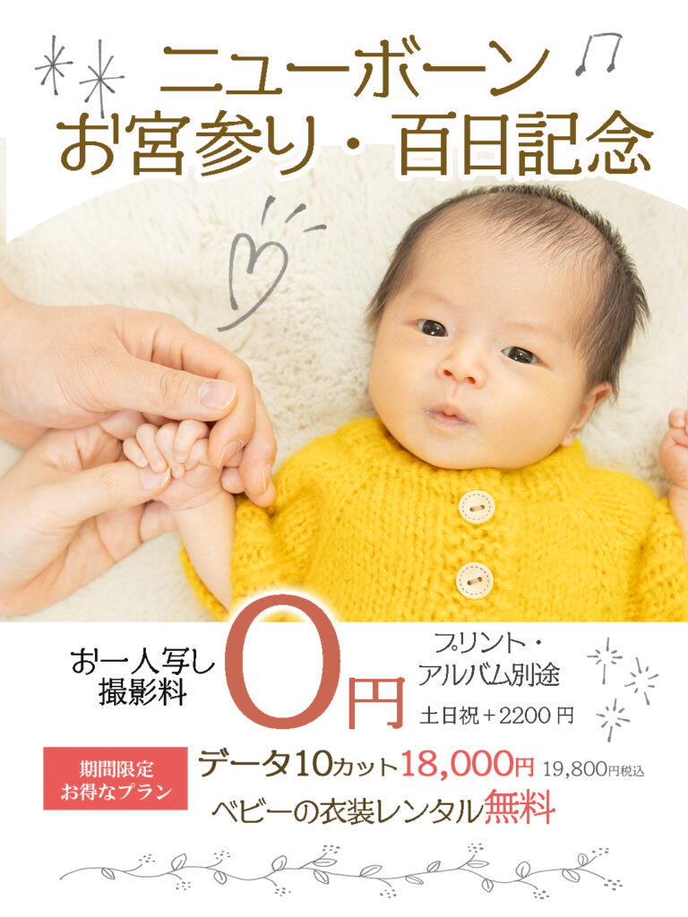 期間中の撮影限定で赤ちゃんの撮影料が無料に!