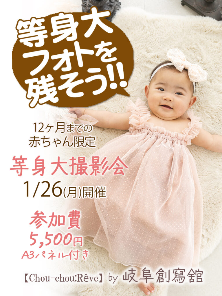 #フォトスタジオ #写真館 #岐阜そうしゃかん #岐阜ベビーイベント#各務原ベビーイベント#関ベビーイベント #岐阜イベント #岐阜ママ #岐阜プレママ #岐阜撮影会 #等身大撮影 #赤ちゃん写真 #マイエンジェル撮影 #ベビーイベント #ベビースタイル #ママといっしょ #バースデーフォト岐阜 #ハーフバースデーフォト岐阜 #岐阜創寫舘 #アトリエシュシュ