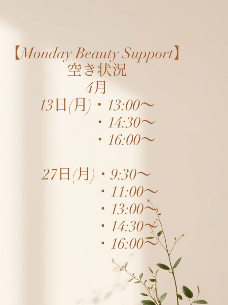 4月の『Monday Beauty Support』の空き状況です🌱
